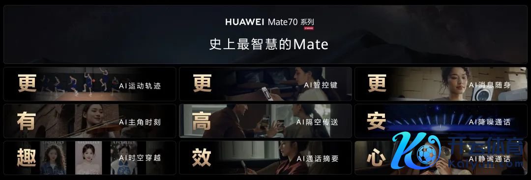 “Mate 70系列首发AI动态相片、AI隔空传送、AI音书随身、AI通顺轨迹、AI通话节录等九大AI功能。”余承东先容。