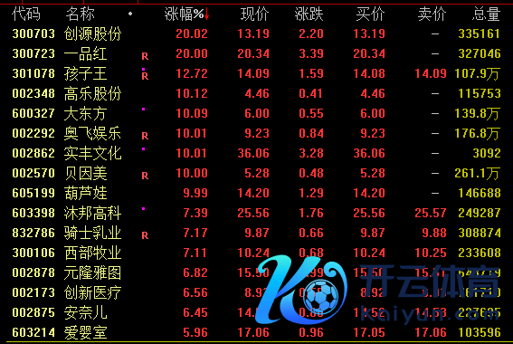婴童认识盘中大幅拉升,扬弃收盘,孩子王涨近13%,贝因好意思、葫芦娃涨停,骑士乳业、西部牧业涨超7%,安奈儿、爱婴室涨约6%。