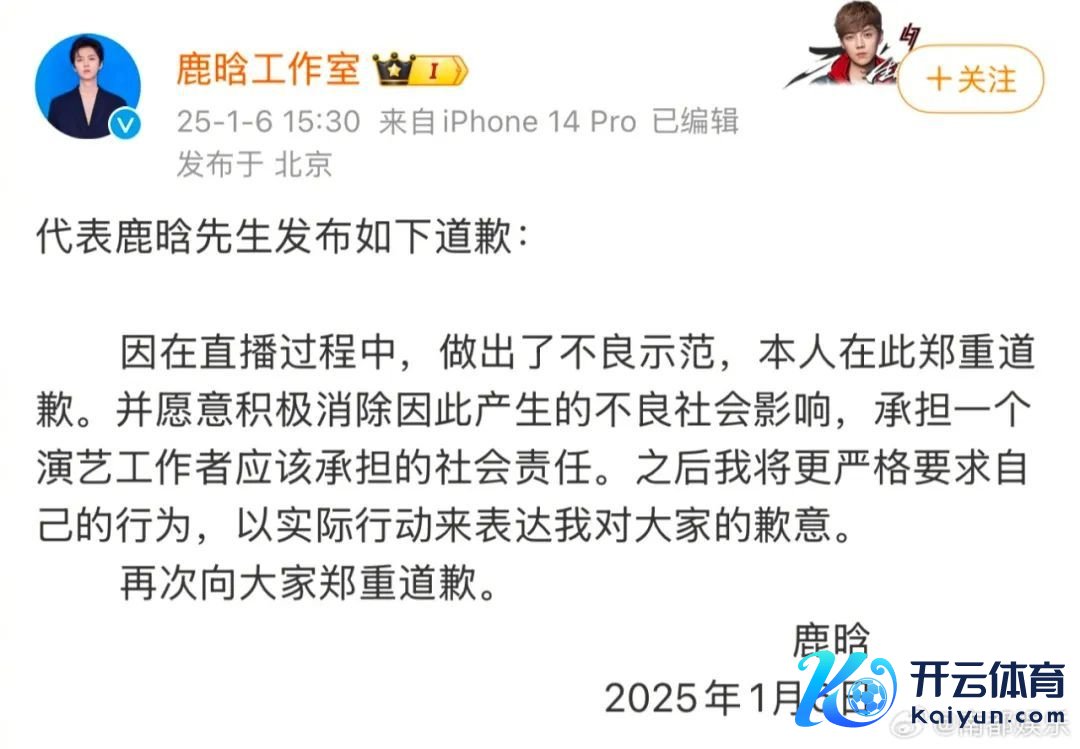 南齐讯 记者蔡念念念念 1月6日开云kaiyun官方网站,#鹿晗外交平台被谢却关怀##鹿晗谈歉#的词条在微博热搜榜上爆了。